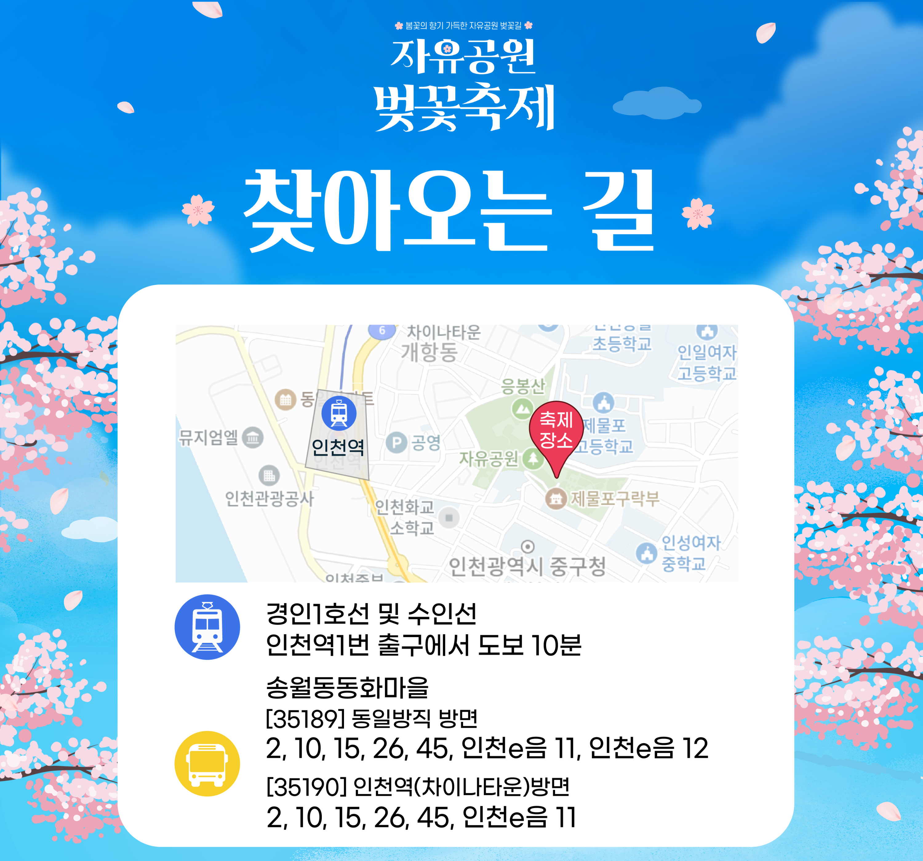 2025 자유공원 벚꽃축제는 인천의 대표 벚꽃 명소인 자유공원 일대를 배경으로 열리는 봄꽃 축제입니다.