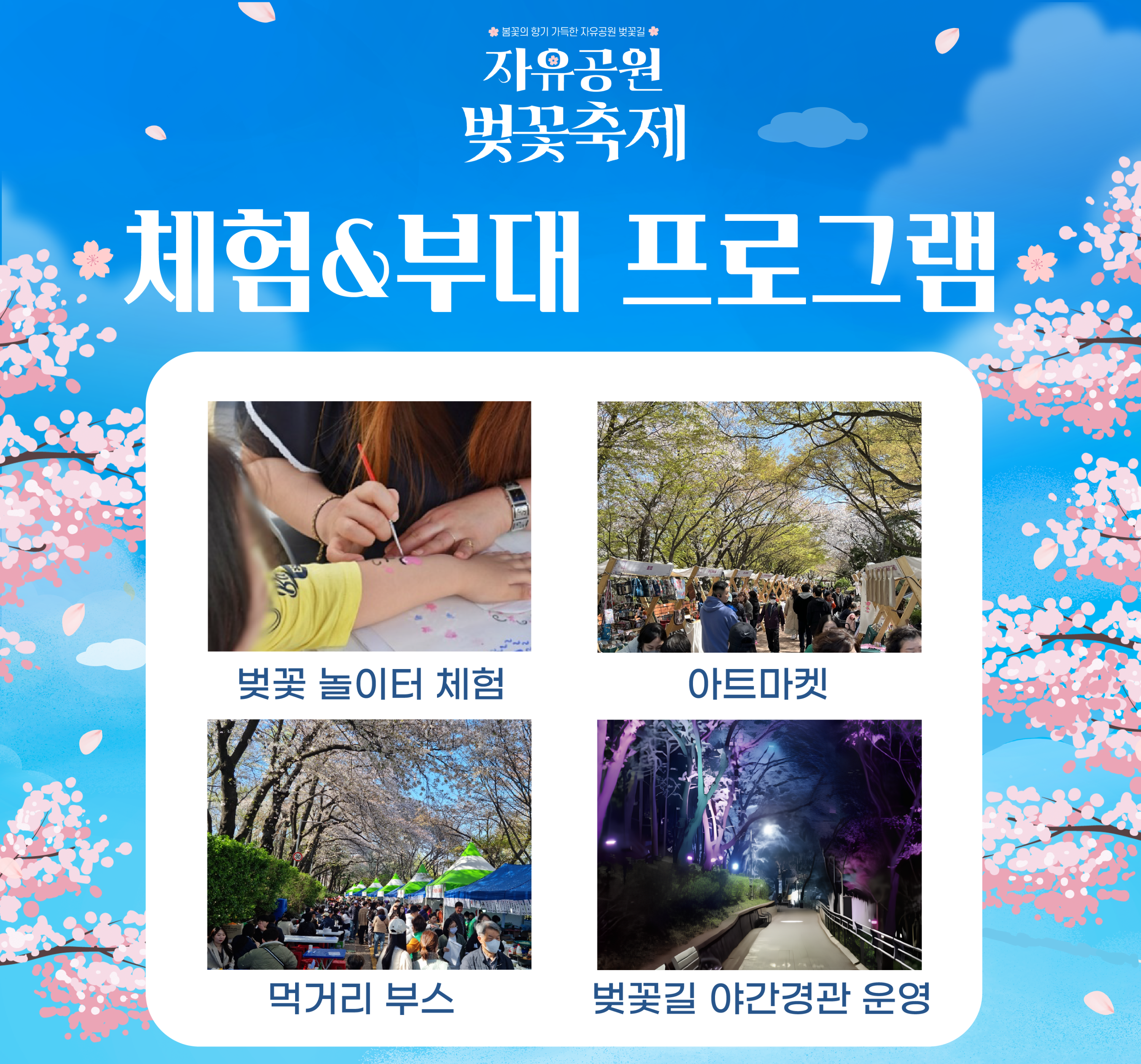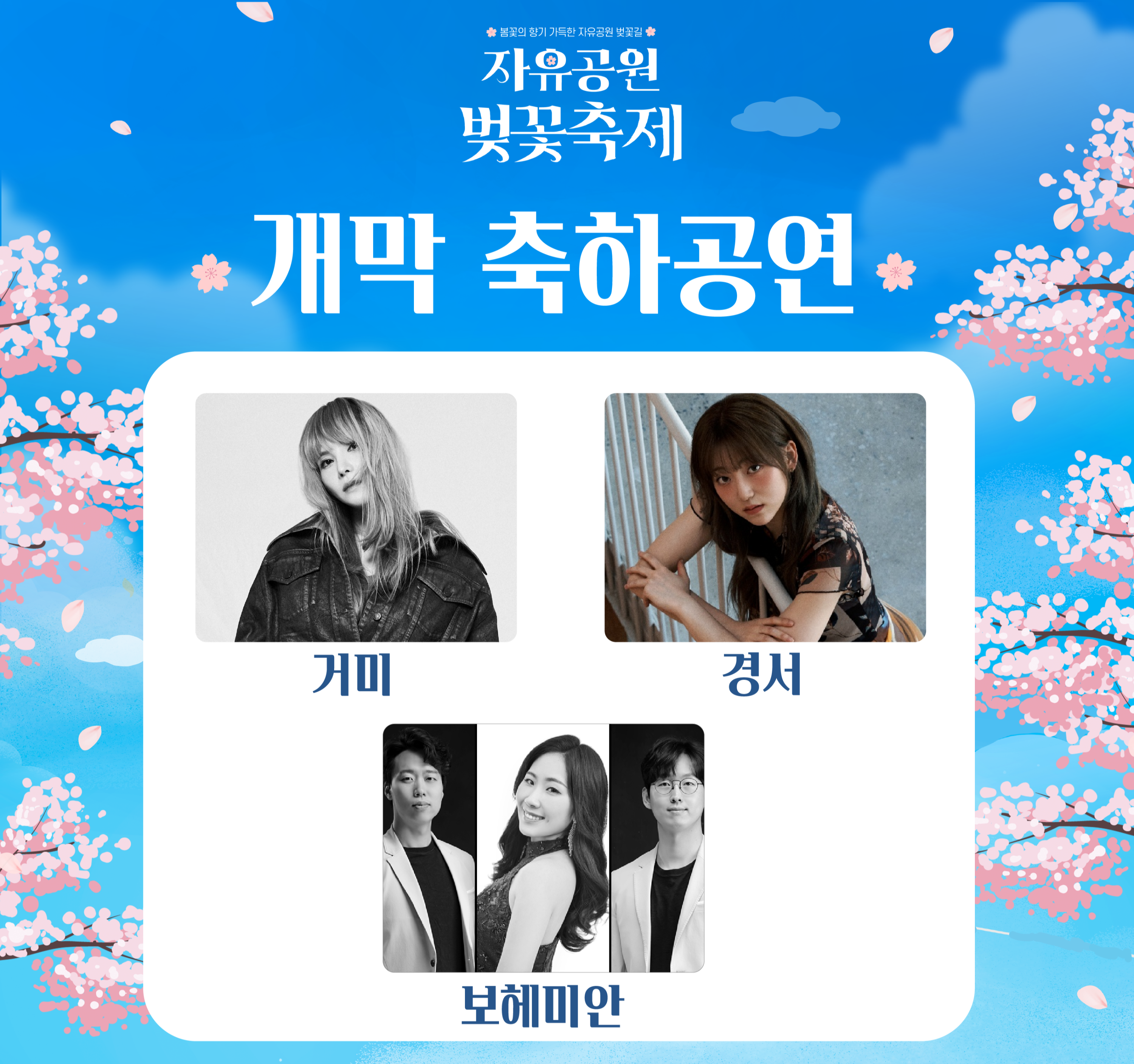 2025 자유공원 벚꽃축제는 벚꽃놀이를 넘어, 음악과 예술, 체험과 장터가 함께하는 복합 문화 축제입니다.