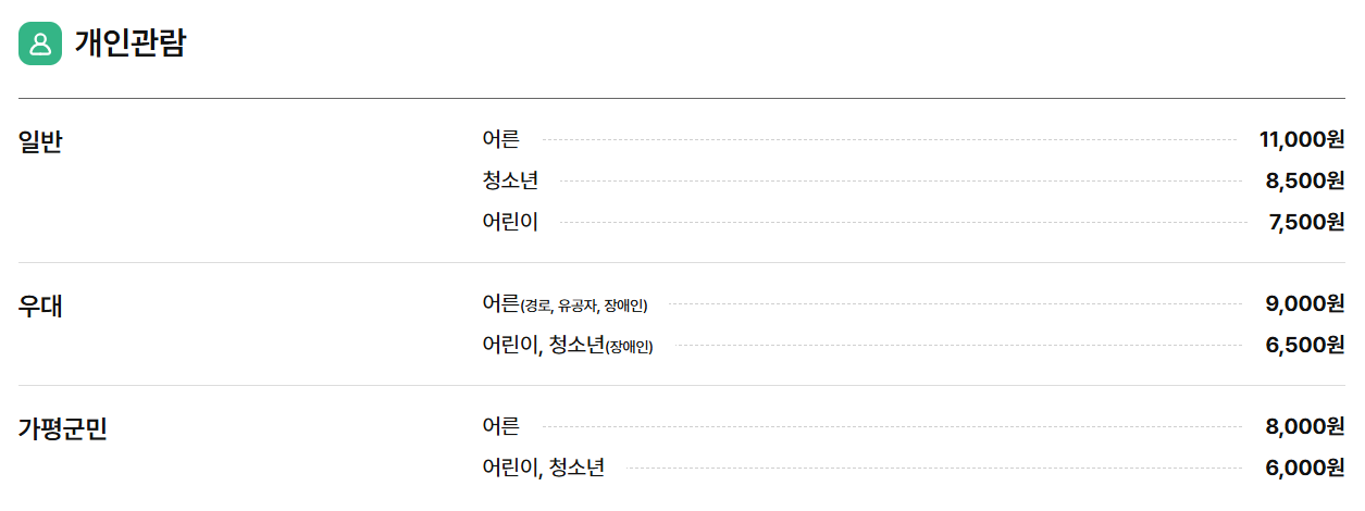- 어린이: 7,500원 - 운영기관: 아침고요수목원