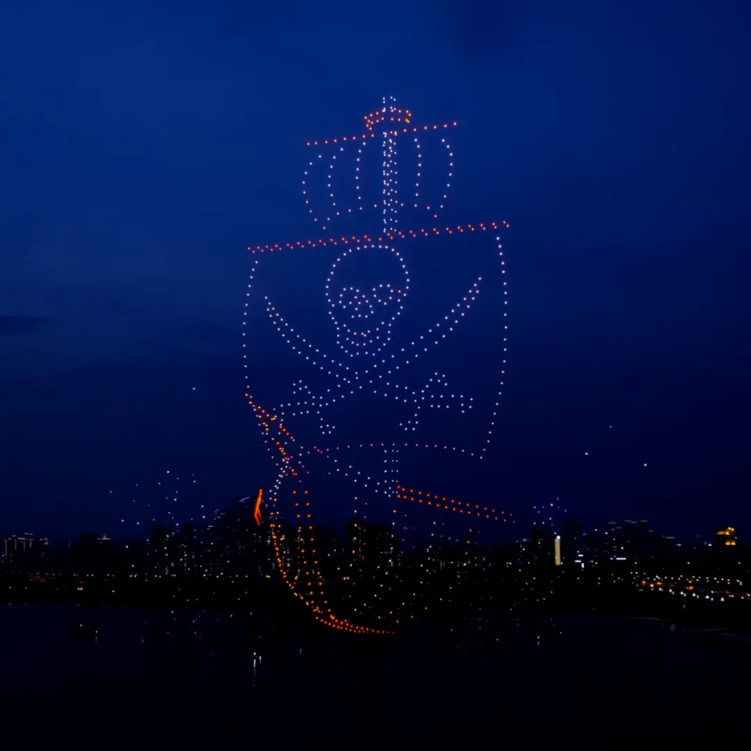 야경과 함께 펼쳐지는 수백 대 드론의 군무,