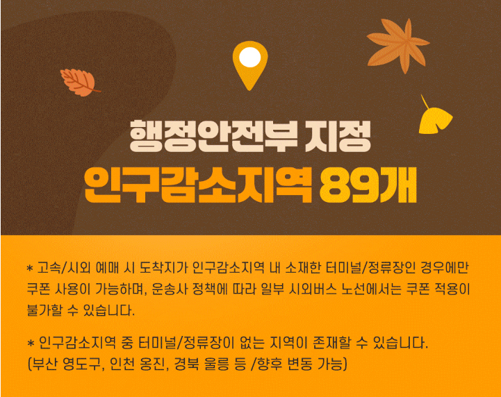 - ‘인구감소지역행 버스 할인’ 배너를 클릭해 쿠폰을 다운로드합니다.